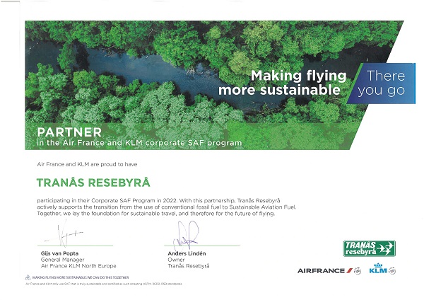Vi kan stolt meddela att vi genom vårt huvudföretag Tranås Resebyrå är första resebyrån i norra Europa att samarbeta med Air France-KLM för att öka produktionen av hållbart flygbränsle.